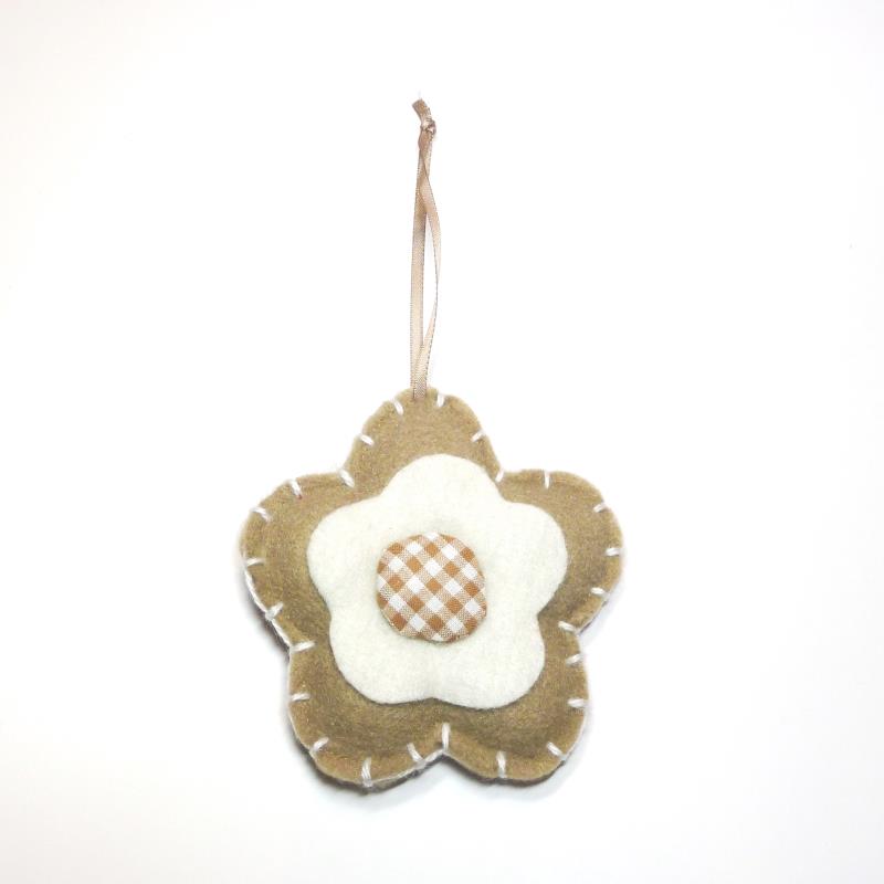 Fleur en feutrine et tissu. Idéal pour décorer votre intérieur car il suffit de l'accrocher ou de la coller sur un objet.